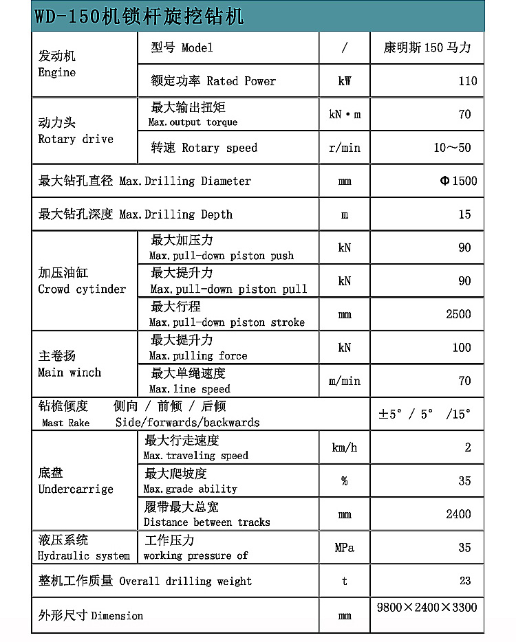 兄弟二人在2012年春天购买了一台凯澳公司生产的WD-150小型旋挖机,承接的一些直径800MM,深度10米的灌注桩,桩基础的数量虽然不算太多,但是凯澳旋挖钻机打孔快、效率高,动作灵活,赚足了人气,兄弟两个也尝到了甜头。2013年通城某大型工业园开始动工,这让跃跃欲试的兄弟两又买了一台WD-150机锁杆旋挖钻机准备大干一场。当时的工期紧,任务重,24小时歇人不歇马的连续工作,除了必要的维护保养外,机器始终处于工作状态。吴氏两兄弟把这种情况说明以后,凯澳公司为两兄弟专配了一个技术人员常期驻扎在他们那里,以备不时之需。