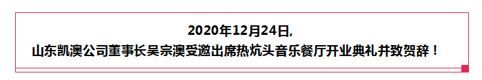 2020年12月24日,山东凯澳公司董事长吴宗澳受邀出席热炕头音乐餐厅开业典礼并致贺辞!