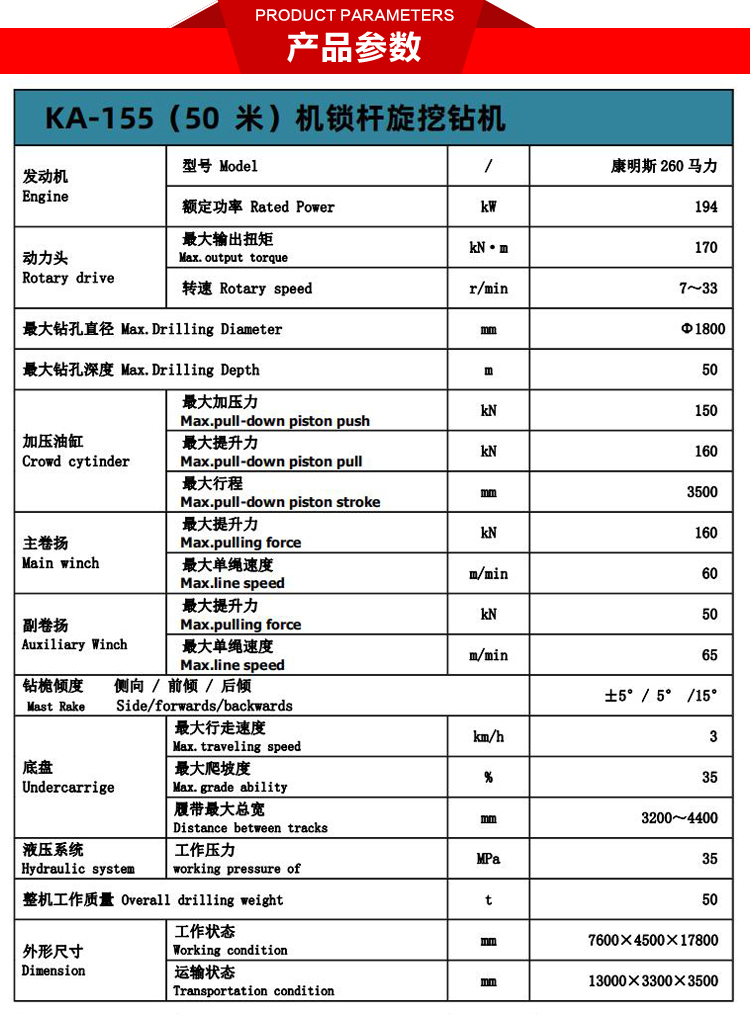 KA-155(50米)机锁杆旋挖钻机